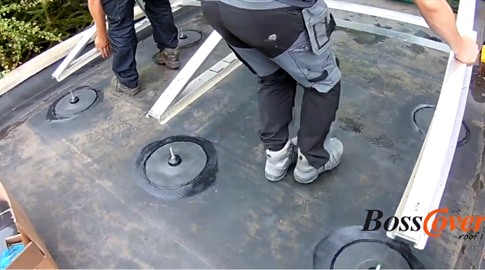 Systeem voor het plaatsen van zonnepanelen zonder gebruik te moeten maken van betondallen. Dit systeem bestaat zowel voor op EPDM dakbedekking als voor op roofing
